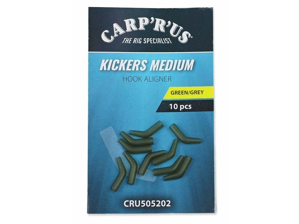Carp'R'Us Kickers Olive/Grey 10 ks jsou tvarovaná rovnátka navržená pro ideální úhel háčku, aby se po nasátí nástrahy rychle a spolehlivě zachytil v kapří tlamce. Díky tomu získáte jistější mechaniku záseku i při opatrném braní a montáž pracuje čistěji od prvního kontaktu, což znamená méně neproměněných záběrů.